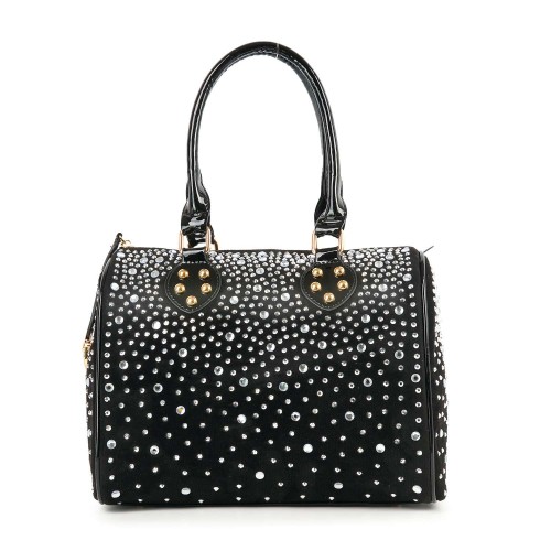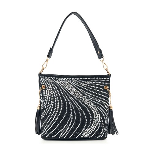 A modern rhinestone design gives this perfectly sized hobo a truly unique edge. Tassel accents add charm and the crossbody strap is the perfect accompaniment!