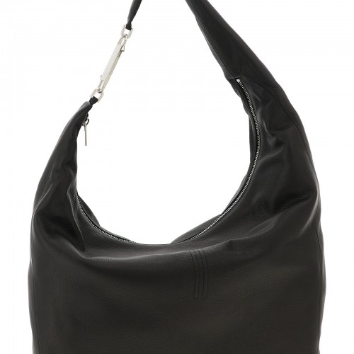 ‘Gemini’ leather shoulder bag with zip closure, snap hook detail on the handle, front logo.