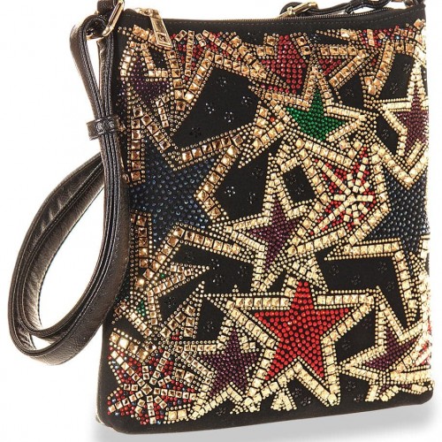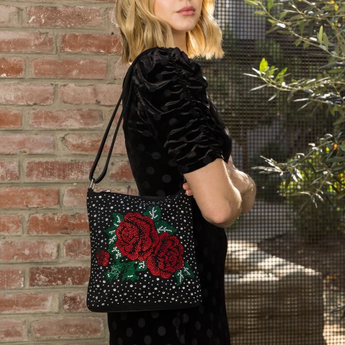 Rose Design Rhinestone Crossbody Sling Black