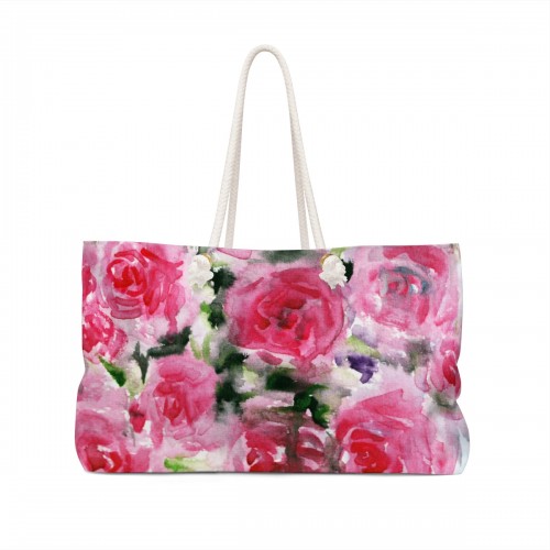 Rosy Floral Weekender Bag, Best Rosy Red Pink Floral Print 24″x13″ Weekender Travel Bag – Made in USA