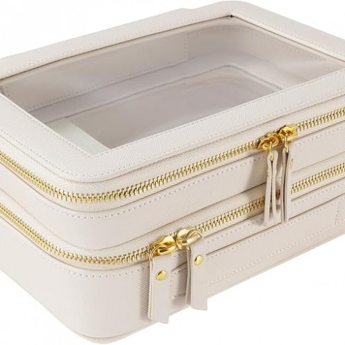 - Clear PVC window ,Transparent design can clear see you beauty cosmetics inside,2 round zipper easy to access,durable golden zipper.