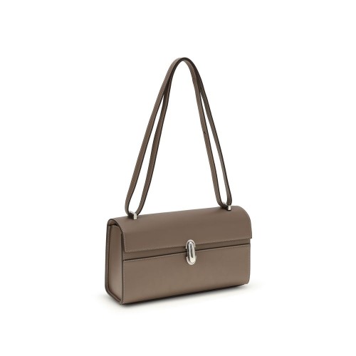 The Symmetry 26 Shoulder Bag by Savette stands out for its unique linear geometry and elongated shape, which maintains an elegant feeling of softness. With a spacious, open interior without separate compartments, it offers practicality and space. The unique Symmetry snap closure ensures security and style. Featuring an interior pocket and a convertible shoulder strap that can be worn across the body, on the shoulder, or as a handle, this bag easily adapts to different needs and styles. A perfect balance of elegance and functionality.