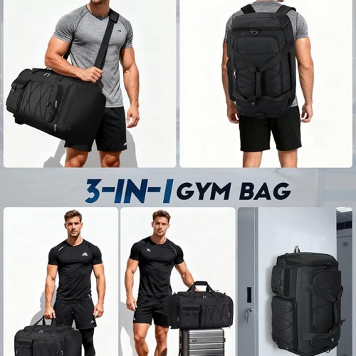 SDYSM Gym Bag for Men 45L Sports Duffel Bags 3-in-1 Travel Duffel Bag with Shoe Compartment, Gym Workout Backpack Carry On Weekender Bag Overnight Bag for Travel, Black