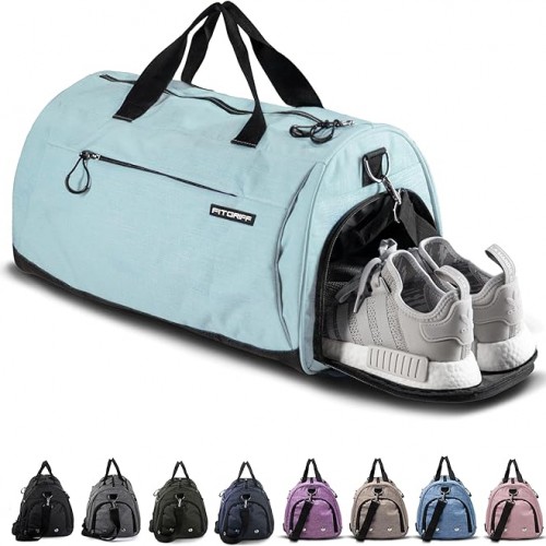 - SMART 45L ORGANIZATION: This large-capacity sports duffel bag holds all your essentials. With a generous 45L volume, it easily fits workout gear, overnight clothes, or travel necessities. Stay organized with multiple dedicated compartments, including a ventilated shoe compartment to isolate odors, a separate wet-dry compartment for gym clothes, and a top elastic bungee to secure a yoga mat or jacket. Everything has its place, making packing and finding items a breeze, size:21.26″×11.81″×11.42″