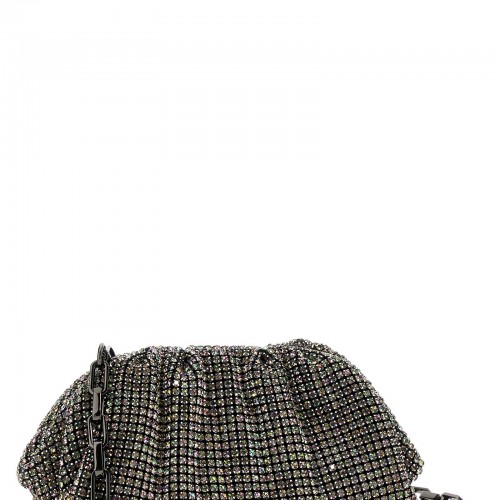 ‘Multi Rhinestone Chainmail’ rhinestone covered clutch, magnetic closure, removable chain shoulder strap.