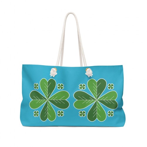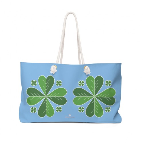 Sky Blue Green Clover Bag, Sky Blue Green Clover Print St. Patrick’s Day Designer 24″x13″ Designer Oversize Tote Weekender Bag-Designed and Printed in USA, Suitcases & Travel Bags Luggage, Four Leaf Clover Weekender Tote Bag, Bachelorette or Women’s Weekend Bag, St. Patrick’s Hangover Drunk Recovery Weekender Oversize Tote Bag