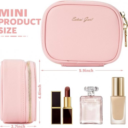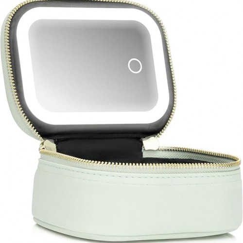 Small Makeup Bag with Led Mirror, Mini Travel Make up Bag 3 Light Modes Adjustable Brightness, for Women Organizer Cosmetic Bag, Portable Travel Train Toiletry Bag, for Pool Parties Work Touch-Ups