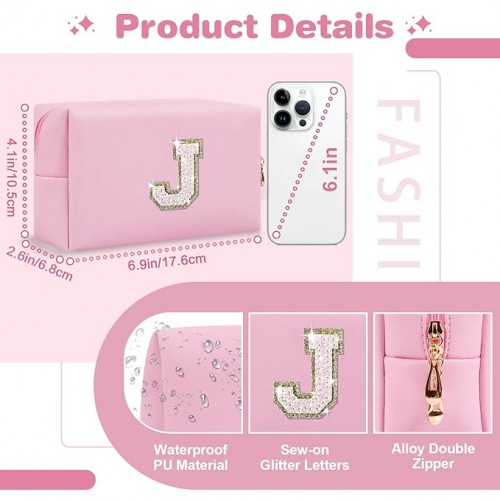 - πγ Unique Design γPreppy patch cosmetic bag with golden glittering sequins patch, fashionable and skin-friendly, comfortable to the touch. The cute A-Z letter pattern patch has a strong personalized style, which is sewn on this cosmetic bag, making the storage bag more eye-catching and adding a personalized atmosphere.