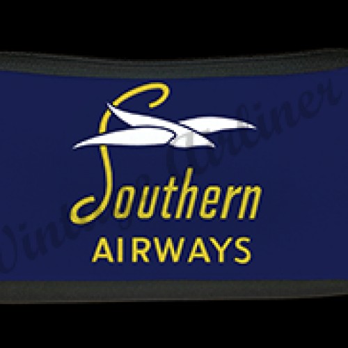 This water resistant travel pouch has the image of a round vintage bag sticker used by Southern Airways. The flip side is black.