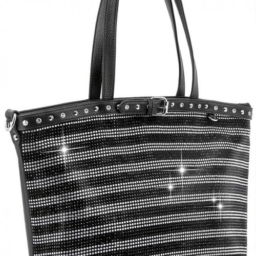 Rhinestone stars shine against the inky denim of an unstructured shoulder bag for casual glam.