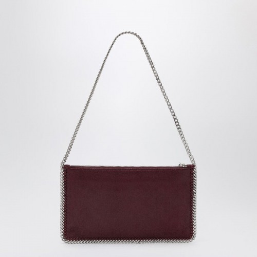 Shoulder bag by Stella McCartney in matte vegan Shaggy Deer fabric in plum color characterized by a chain shoulder strap, zip closure, zipper pull with a medallion charm with engraved logo, and a single compartment.