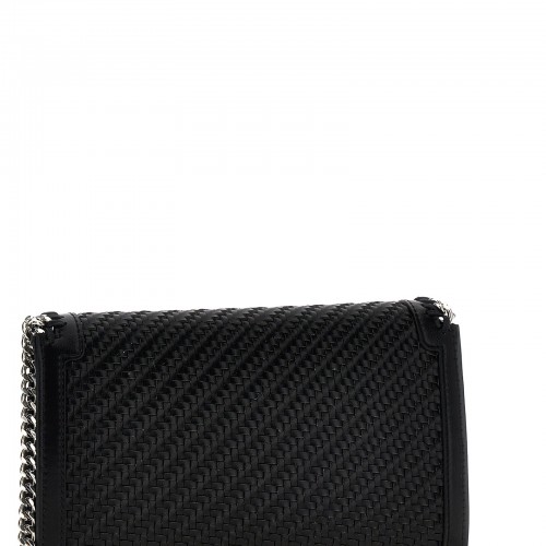 ‘Mini Falabella’ woven VEGEA fabric crossbody bag with magnetic closure, chain handle.