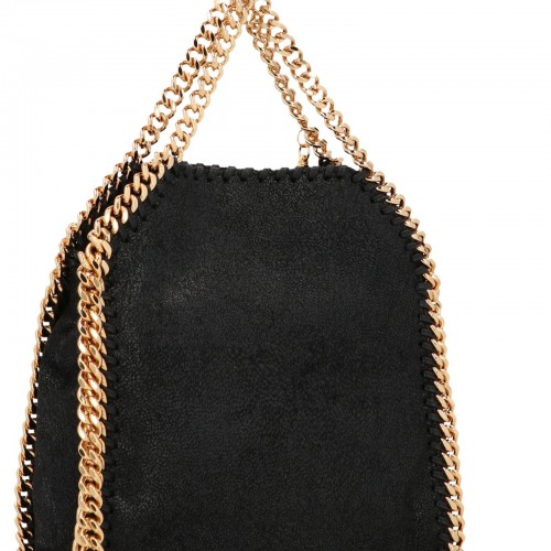 Stella McCartney ‘Tiny Falabella’ shoulder bag in shaggy deer with a handles and a gold chain.