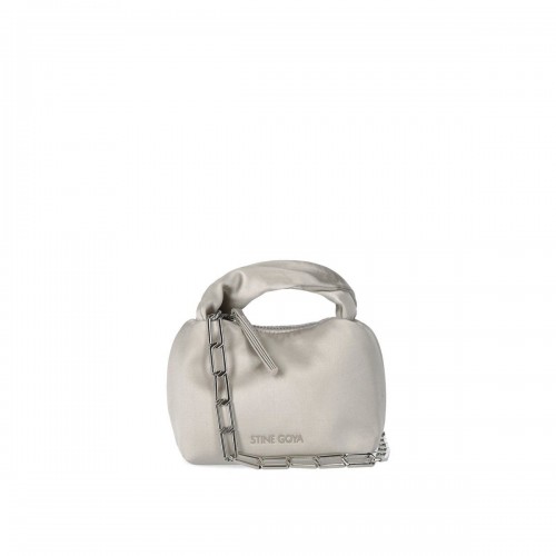 Ziggy bag by Stine Goya made of lime green satin fabric. Silver metal top handle and chain shoulder strap. Interior with slip pocket, zip closure and front logo. Measurements 14x8x12 cm.