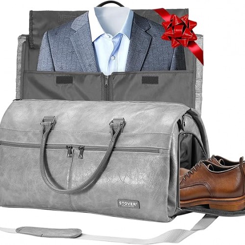 STOVER Garment Travel Duffle Bag, Large 2-in-1 Convertible Carry-on Luggage for Men & Women- Hanging Suits, Dresses & Clothes + Shoe Compartment- Weekender Tote Combo Duffel (Black Leatherette)