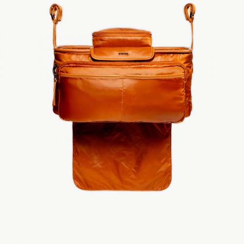 Crafted in a 100% recycled nylon exterior with a water-repellent andantimicrobial lining, this caddy is designed to carry it all—without compromising on style. It holds up to two drink cups, with a spacious main compartment for diapers, wipes, and creams. A roll-out pouch is always handy to store extra change of clothes, while built-in toy hooks keep little ones entertained. A slip pocket offers quick access to your phone, and a zippered pocket keeps essentials like keys and wallet secure.