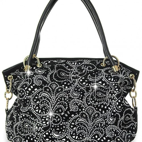 Signature quilted faux leather studded with rhinestones makes this petite hobo a chic option for toting around essentials from work to dinner or shopping with friends.