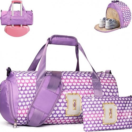 Sweet Gift for Teen, Girls Travel Duffel Bag, Kids Initial Overnight Bags with Shoe Compartment, Initial Duffle Bag with Makeup Pouch, 3 4 5 6 7 8 Year Old Girl Birthday Gifts (Letter T)