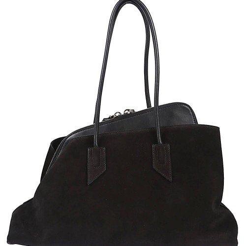 ”La Passeggiata Medium” top handle in black suede and calfskin with internal zip pocket and tubular handles.