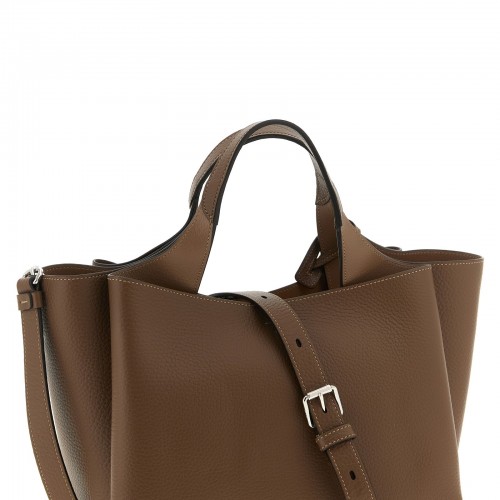 ‘Apa Mini’ leather handbag, double handle, removable pendant with metal T Timeless accessory, snap hook closure, flat inner zip pocket, feet on the bottom.