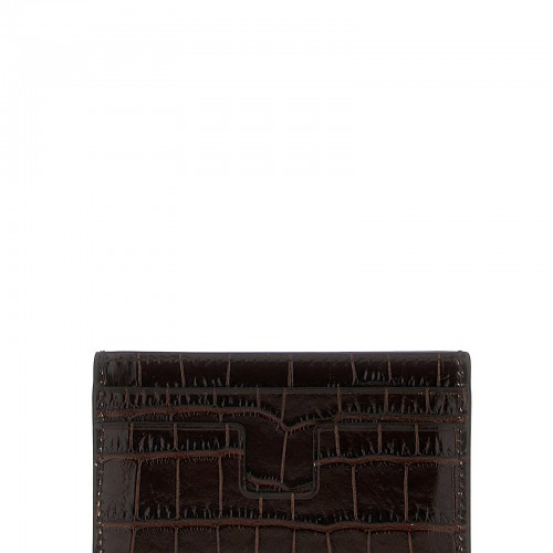 Croc print leather card holder with front embossed logo.