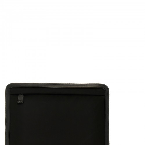 Nylon clutch bag with leather details, logo application, zip closure.