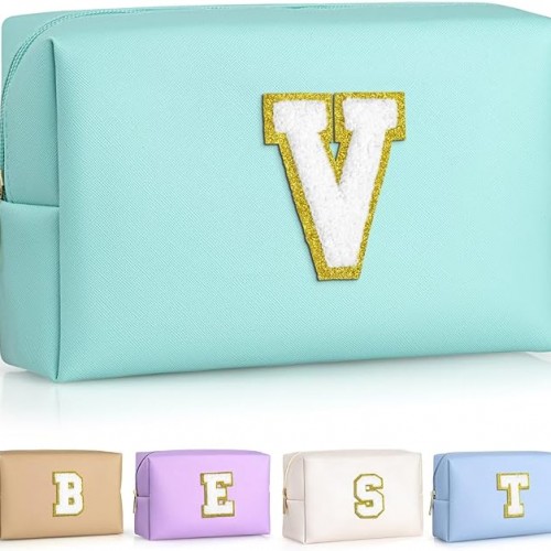 TOPEAST Gifts for Friends Female Mom, Cute Makeup Bag Small Pink Cosmetic Bag Travel Toiletry Bag, Personalized Birthday Gift for Women Girl, Preppy Travel Stuff for Girls (Blue C)