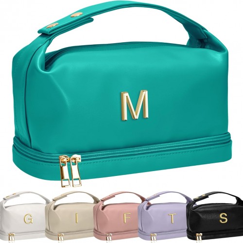 TOPEAST Gifts for Friends – Friendship Gifts for Women, Travel Toiletry Bag for Women, Hanging Toiletry Bag, Monogrammed Initial Tolietry Pouch Makeup Bag – Letter F, Blue