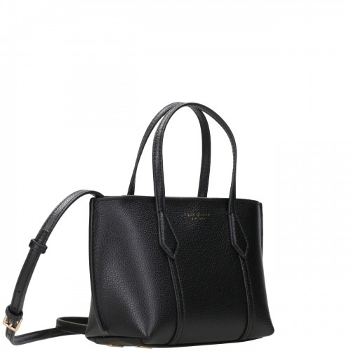 – Hammered leather – Leather top handles, height 10cm – Adjustable and removable shoulder strap, height 56.5cm – Zipper top closure – Inside pocket – Cotton lining – Lettering logo on the front – Protective pouch included – Dimensions: H 14cm; W 18cm; D 9.5cm