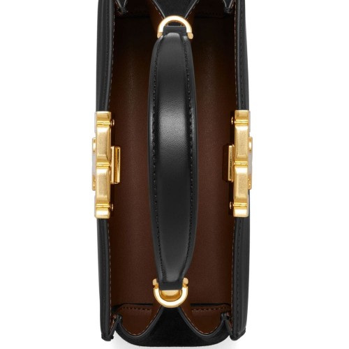 black calf leather smooth grain suede trim gold-tone logo plaque gold-tone hardware magnetic fastening adjustable detachable shoulder strap single top handle partitioned compartment internal card slots This piece comes complete with a protective dust bag.
