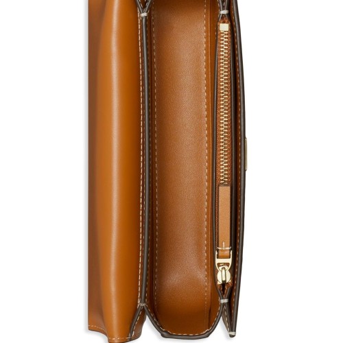 cognac brown calf leather adjustable detachable shoulder strap foldover top signature Double T motif main compartment internal zip-fastening pocket gold-tone hardware concealed magnetic fastening This item is crafted with leather that has been produced in a certified Leather Working Group (LWG) or ICEC tannery, ensuring the production process has a reduced environmental impact.