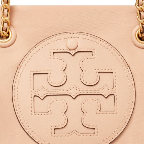 blush beige recycled nylon embossed logo to the front signature Double T motif faux-leather trim gold-tone hardware top zip fastening two chain-link shoulder straps main compartment full lining This item is made from at least 50% recycled or upcycled materials. For recycled synthetic clothing products, we highly recommend using a microfibre-catching washing bag to ensure that no microplastics that can pollute water are released in the process. Learn more about what makes a product Conscious on our Conscious Criteria page
