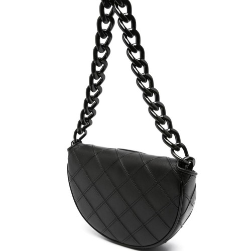 black calf leather diamond quilting embossed logo to the front foldover top with magnetic fastening detachable chain-link top handle adjustable detachable shoulder strap main compartment internal card slots tonal hardware
