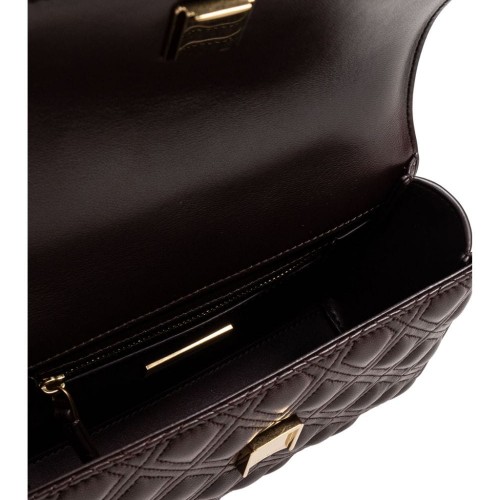burgundy nappa leather diamond quilting foldover top with magnetic fastening leather and chain-link shoulder strap signature Double T motif tassel detail slip pocket to the rear internal zip-fastening pocket multiple internal slip pockets This piece comes complete with a protective dust bag.