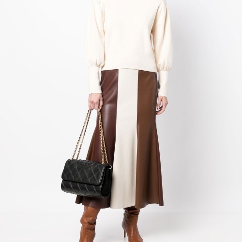 black leather embossed logo to the front diamond-quilted detailing gold-tone hardware chain-link shoulder strap sliding chain-link shoulder strap foldover top with magnetic fastening partitioned compartment internal zip-fastening pocket internal logo plaque