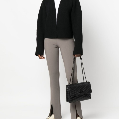 black calf leather chain-link shoulder strap foldover top logo plaque main compartment