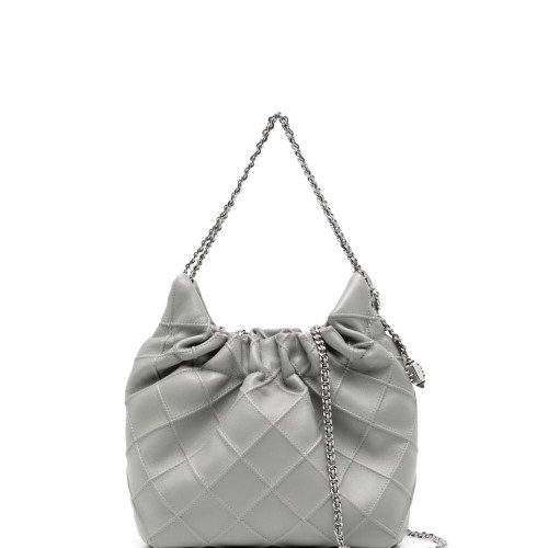 black diamond quilted pattern logo embellishment chain shoulder strap flap closure