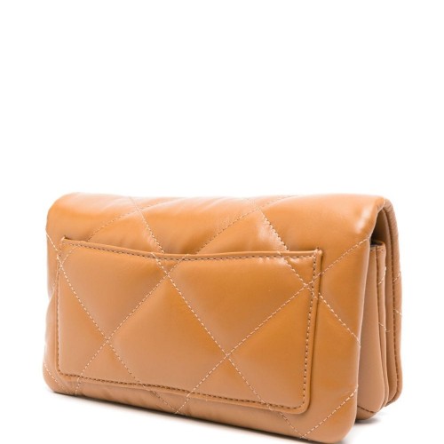 cognac brown calf leather padded design diamond quilting detachable leather and chain-link shoulder strap signature Double T motif partitioned compartment internal zip-fastening pocket gold-tone hardware foldover top with magnetic fastening