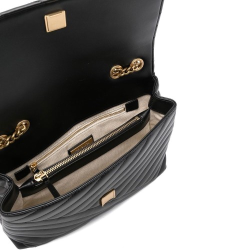black leather chevron quilting signature Double T motif gold-tone hardware tonal stitching two leather and chain-link shoulder straps front flap closure concealed magnetic fastening main compartment full lining partitioned compartment internal zip pocket internal logo patch