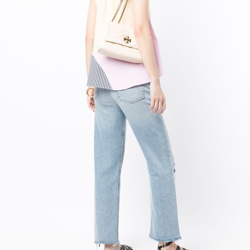 Cream leather Kira chevron-leather shoulder bag from TORY BURCH featuring chevron quilting, foldover top and chain-link shoulder strap.