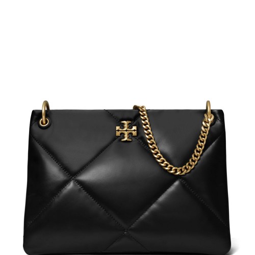 Black, cotton, velvety effect, flap at the top with magnetic closure, chain shoulder strap, gold-colored logo plaque and single compartment.
