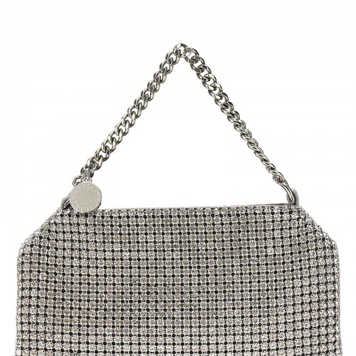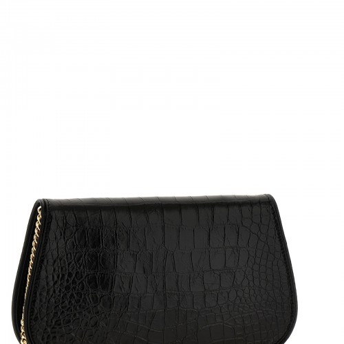 ‘Reva’ croc print leather clutch, front metal logo, metal chain shoulder strap.