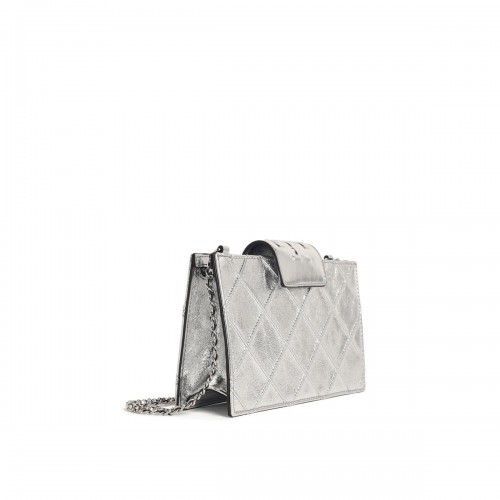 Embossed diamond pattern, magnetic closure, chain shoulder strap with tonal leather insert, zip closure, one inner flat pocketn20 x 11.5 x 5.4 cm