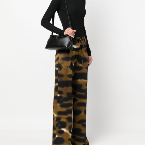 black calf leather grained texture T-Lock fastening logo stamp to the front adjustable detachable shoulder strap foldover top main compartment internal logo patch