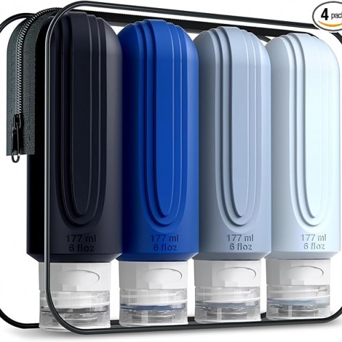 Travel Bottles for Toiletries, Large 6oz Oversize Containers, BPA Free Leak Proof Tubs Refillable Liquid Traveler Accessories with Toiletry Bag for Cometic Shampoo and Lotion Soap (4 Pack)