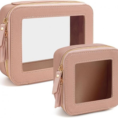 - Clear Design: Our clear toiletry bag set is sleek and minimalistic look for your makeup accessories collection. And is designed with a clear PVC window,all items are clear at a glance, and you can quickly choose the cosmetics you need. Large: 9.44“ x 6.1” x 2.7”, Mini: 5” x 4.7” x 2”