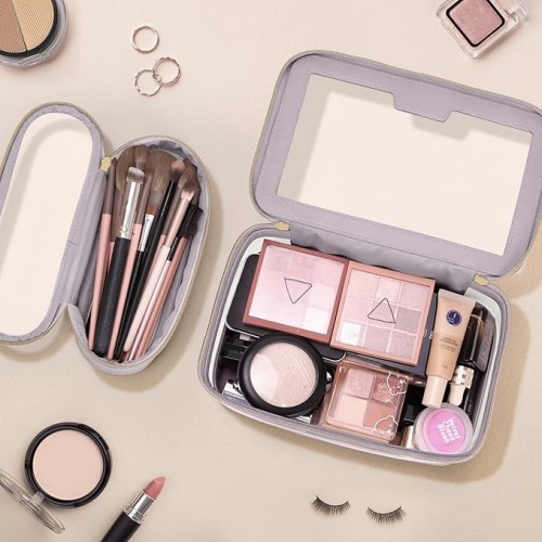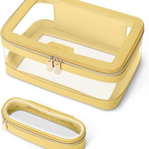 Travel Clear Makeup Bag with Makeup Brush Bag, Leather Makeup Case Toiletry Bag, Portable Cosmetic Bag Case, Transparent Waterproof Cosmetic Organizer Storage Bag for Women, Purple