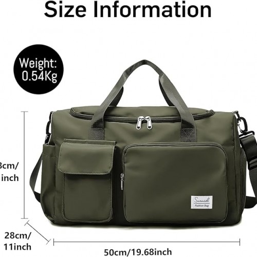 - Multifunctional Pockets: In order to meet the different needs of customers,our weekender bag has many compartments to hold different item. The main compartment was designed to hold gym accessories and daily supplies.It also has a shoe compartment and a wet pocket for accommodating sports shoes and wet towel. There are two front pockets and one side pocket, one back pocket, youcan take and bring more carry-on goods or water bottles.