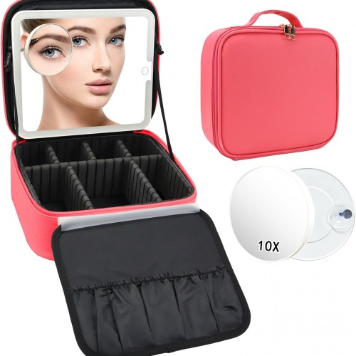 Travel Makeup Bag with LED Mirror and Light Travel Makeup Case Cosmetic Organizer Portable Cosmetic Brush Organizer Bag with Adjustable Dividers for Cosmetics Makeup Brushes Toiletry (Black)