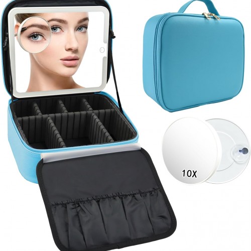 Travel Makeup Bag with LED Mirror and Light Travel Makeup Case Cosmetic Organizer Portable Cosmetic Brush Organizer Bag with Adjustable Dividers for Cosmetics Makeup Brushes Toiletry(Purple)